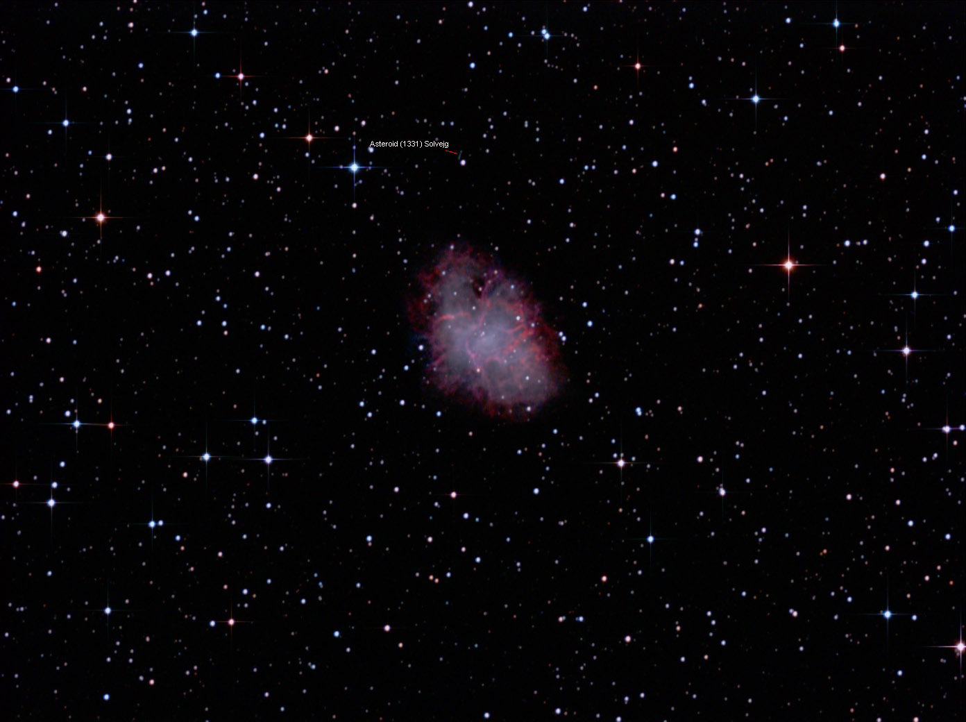 - Crab Nebula (w/asteroid (1331) Solvejg, magnitude 16.3) (click image for full-scale)