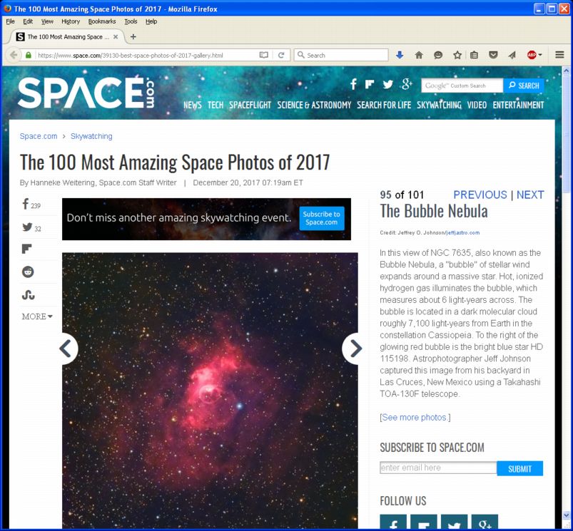 Most Amazing Space Photos of 2017" (screenshot).