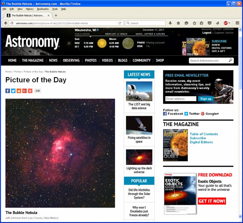 Sky at Night Magazine, Feb 2018 issue (PRINT), pg 31 (photo).